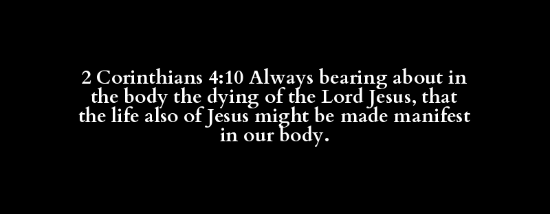 2 Corinthians 4:10 Always bearing about in the body the dying of the Lord Jesus, that the life also of Jesus might be made manifest in our body.