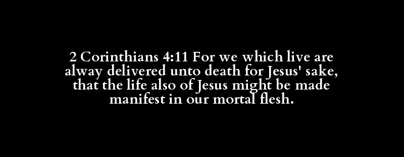 2 Corinthians 4:11 For we which live are alway delivered unto death for Jesus' sake, that the life also of Jesus might be made manifest in our mortal flesh.
