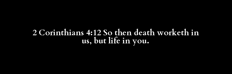 2 Corinthians 4:12 So then death worketh in us, but life in you.