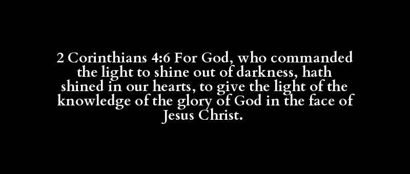 2 Corinthians 4:6 For God, who commanded the light to shine out of darkness, hath shined in our hearts, to give the light of the knowledge of the glory of God in the face of Jesus Christ.