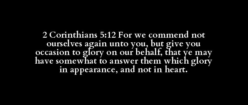 | γάρ | συνιστάω | οὐ | ἑαυτοῦ | πάλιν | ὑμῖν | ἀλλά | δίδωμι | ὑμῖν | ἀφορμή | καύχημα | ὑπέρ | ἡμῶν | ὑπέρ | ἵνα | ἔχω | πρός | καυχάομαι | ἐν | πρόσωπον | καί | οὐ | καρδία |
