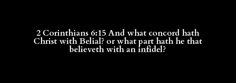 2 Corinthians 6:15 And what concord hath Christ with Belial? or what part hath he that believeth with an infidel?