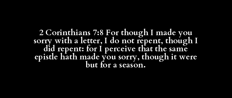 2 Corinthians 7:8 For though I made you sorry with a letter, I do not repent, though I did repent: for I perceive that the same epistle hath made you sorry, though it were but for a season.