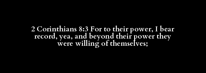 2 Corinthians 8:3 For to their power, I bear record, yea, and beyond their power they were willing of themselves;