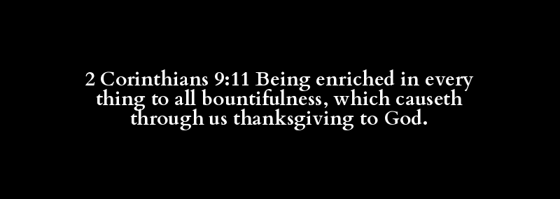 2 Corinthians 9:11 Being enriched in every thing to all bountifulness, which causeth through us thanksgiving to God.