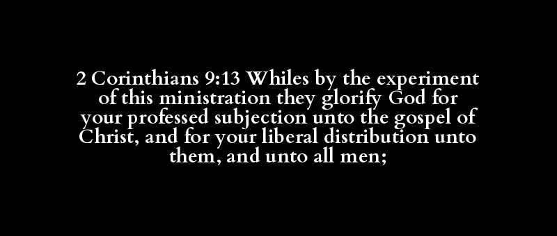 | [dia] | [dokime] | [taute] | [diakonia] | [doxazo] | [theos] | [epi] | [humon] | [homologia] | [hupotage] | [eis] | [euaggelion] | [Christos] | [kai] | [haplotes] | [koinonia] | [eis] | [autos] | [kai] | [eis] | [pas] |