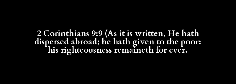 2 Corinthians 9:9 (As it is written, He hath dispersed abroad; he hath given to the poor: his righteousness remaineth for ever.