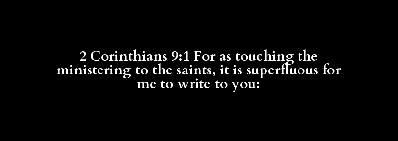 2 Corinthians 9:1 For as touching the ministering to the saints, it is superfluous for me to write to you: