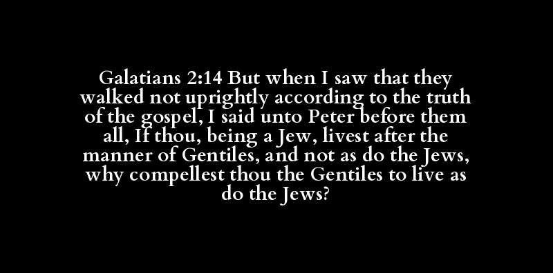 Galatians 2:14 But when I saw that they walked not uprightly according to the truth of the gospel, I said unto Peter before them all, If thou, being a Jew, livest after the manner of Gentiles, and not as do the Jews, why compellest thou the Gentiles to live as do the Jews?