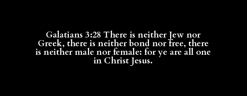 Galatians 3:28 There is neither Jew nor Greek, there is neither bond nor free, there is neither male nor female: for ye are all one in Christ Jesus.