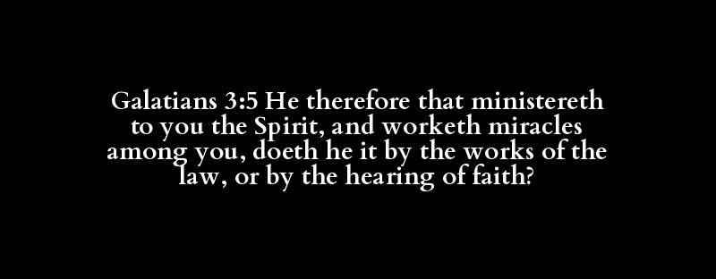 Galatians 3:5 He therefore that ministereth to you the Spirit, and worketh miracles among you, doeth he it by the works of the law, or by the hearing of faith?