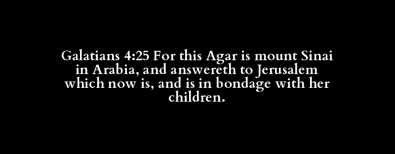 Galatians 4:25 For this Agar is mount Sinai in Arabia, and answereth to Jerusalem which now is, and is in bondage with her children.