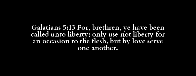 Galatians 5:13 For, brethren, ye have been called unto liberty; only use not liberty for an occasion to the flesh, but by love serve one another.