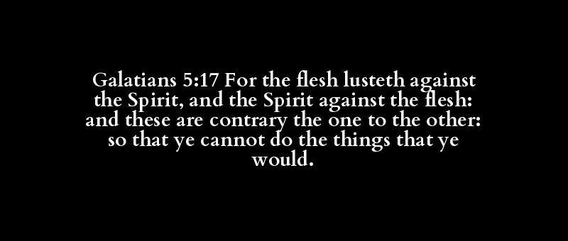 Galatians 5:17 For the flesh lusteth against the Spirit, and the Spirit against the flesh: and these are contrary the one to the other: so that ye cannot do the things that ye would.