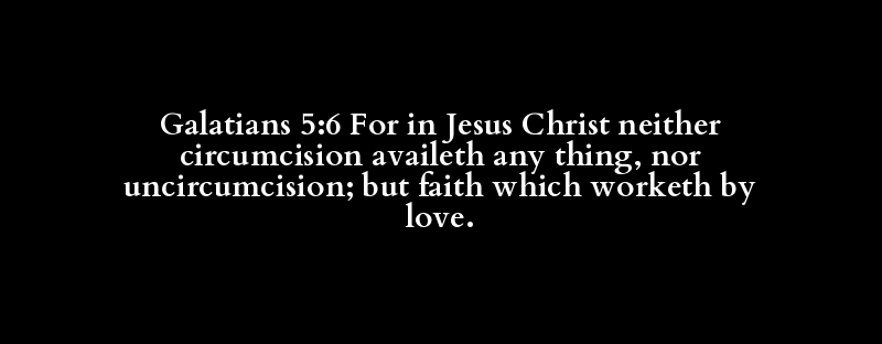 Galatians 5:6 For in Jesus Christ neither circumcision availeth any thing, nor uncircumcision; but faith which worketh by love.