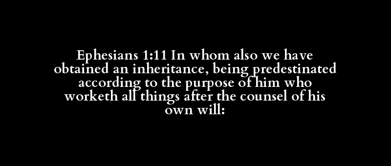 Ephesians 1:11 In whom also we have obtained an inheritance, being predestinated according to the purpose of him who worketh all things after the counsel of his own will:
