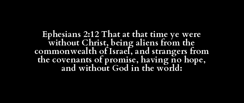 Ephesians 2:12 That at that time ye were without Christ, being aliens from the commonwealth of Israel, and strangers from the covenants of promise, having no hope, and without God in the world: