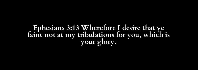 Ephesians 3:13 Wherefore I desire that ye faint not at my tribulations for you, which is your glory.