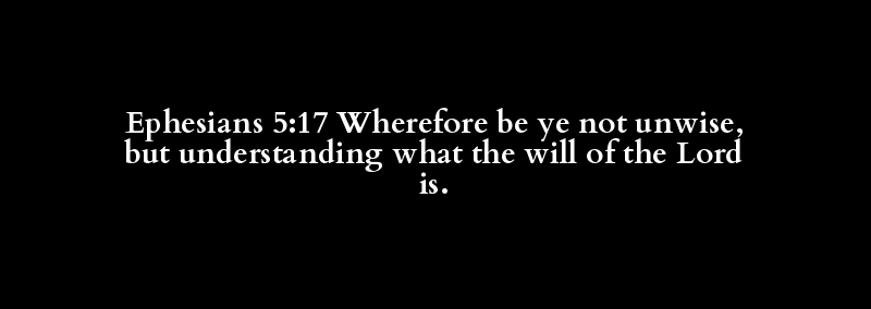 Ephesians 5:17 Wherefore be ye not unwise, but understanding what the will of the Lord is.