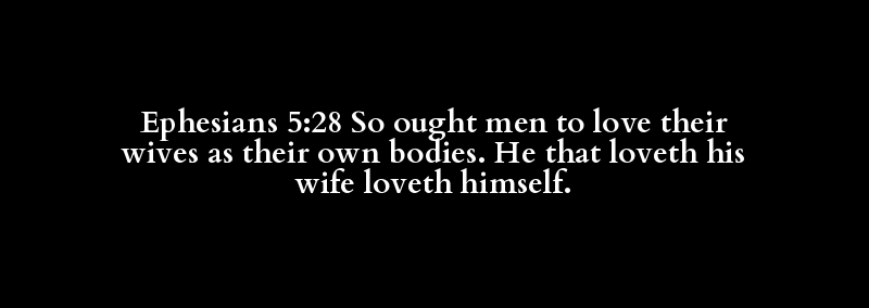 Ephesians 5:28 So ought men to love their wives as their own bodies. He that loveth his wife loveth himself.