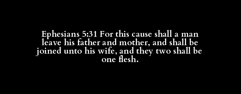 Ephesians 5:31 For this cause shall a man leave his father and mother, and shall be joined unto his wife, and they two shall be one flesh.