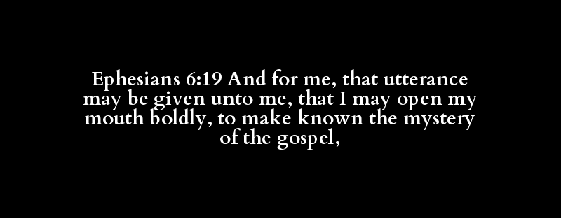 Ephesians 6:19 And for me, that utterance may be given unto me, that I may open my mouth boldly, to make known the mystery of the gospel,