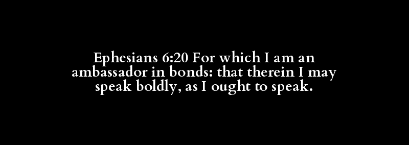 Ephesians 6:20 For which I am an ambassador in bonds: that therein I may speak boldly, as I ought to speak.