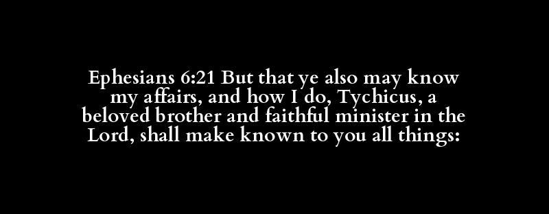 Ephesians 6:21 But that ye also may know my affairs, and how I do, Tychicus, a beloved brother and faithful minister in the Lord, shall make known to you all things: