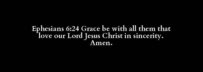 Ephesians 6:24 Grace be with all them that love our Lord Jesus Christ in sincerity. Amen.