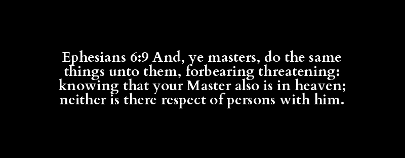 Ephesians 6:9 And, ye masters, do the same things unto them, forbearing threatening: knowing that your Master also is in heaven; neither is there respect of persons with him.