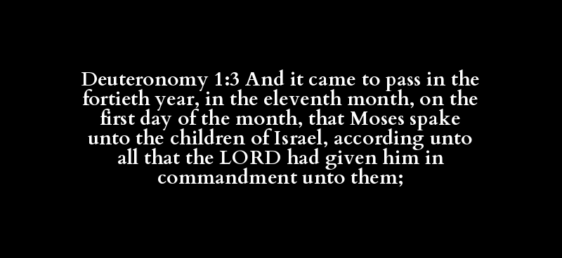 Deuteronomy 1:3 And it came to pass in the fortieth year, in the eleventh month, on the first day of the month, that Moses spake unto the children of Israel, according unto all that the LORD had given him in commandment unto them;