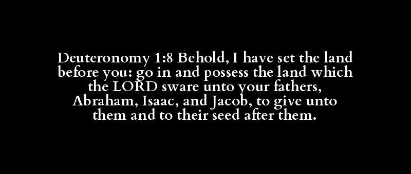 Deuteronomy 1:8 Behold, I have set the land before you: go in and possess the land which the LORD sware unto your fathers, Abraham, Isaac, and Jacob, to give unto them and to their seed after them.