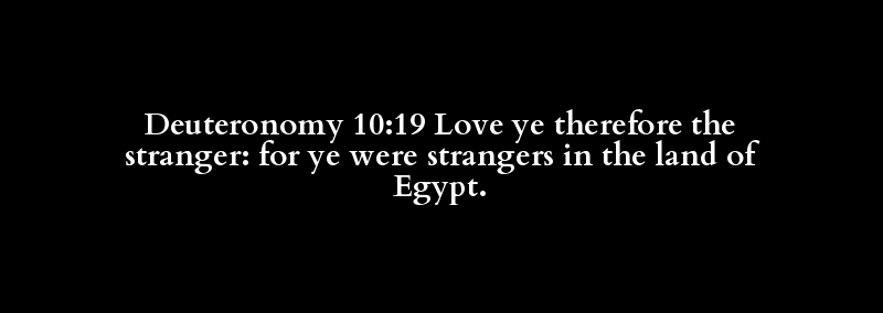 Deuteronomy 10:19 Love ye therefore the stranger: for ye were strangers in the land of Egypt.