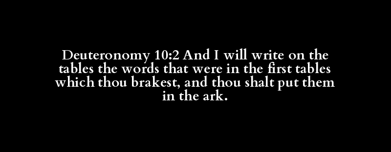 Deuteronomy 10:2 And I will write on the tables the words that were in the first tables which thou brakest, and thou shalt put them in the ark.