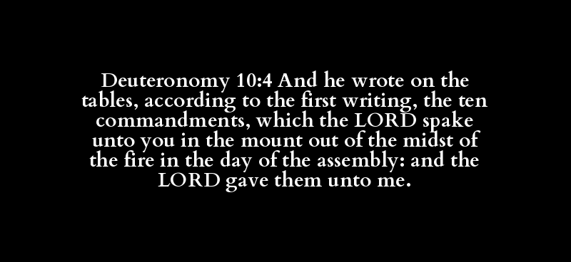 Deuteronomy 10:4 And he wrote on the tables, according to the first writing, the ten commandments, which the LORD spake unto you in the mount out of the midst of the fire in the day of the assembly: and the LORD gave them unto me.