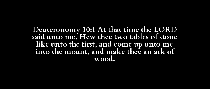 Deuteronomy 10:1 At that time the LORD said unto me, Hew thee two tables of stone like unto the first, and come up unto me into the mount, and make thee an ark of wood.