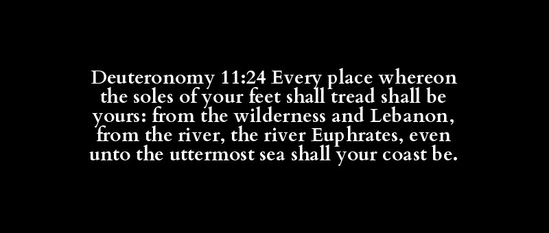 Deuteronomy 11:24 Every place whereon the soles of your feet shall tread shall be yours: from the wilderness and Lebanon, from the river, the river Euphrates, even unto the uttermost sea shall your coast be.
