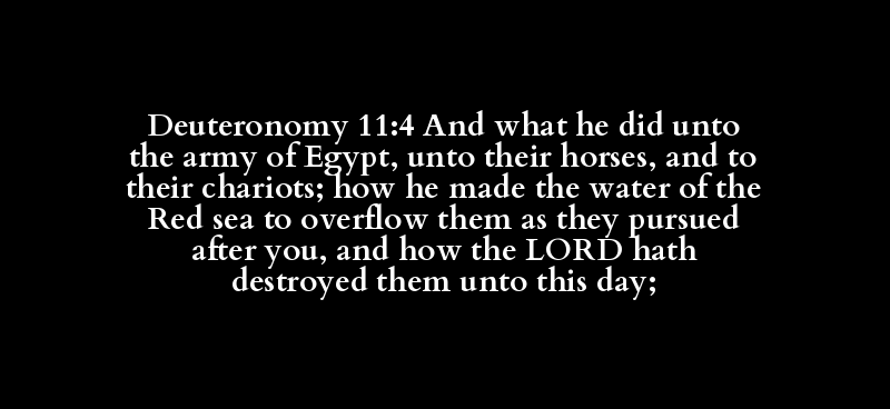 Deuteronomy 11:4 And what he did unto the army of Egypt, unto their horses, and to their chariots; how he made the water of the Red sea to overflow them as they pursued after you, and how the LORD hath destroyed them unto this day;