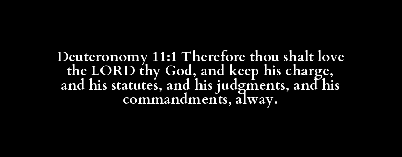Deuteronomy 11:1 Therefore thou shalt love the LORD thy God, and keep his charge, and his statutes, and his judgments, and his commandments, alway.