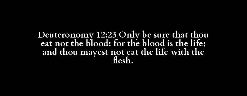 Deuteronomy 12:23 Only be sure that thou eat not the blood: for the blood is the life; and thou mayest not eat the life with the flesh.