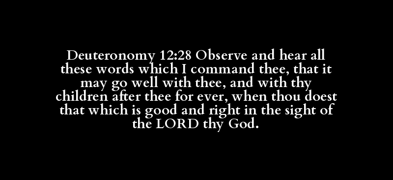 Deuteronomy 12:28 Observe and hear all these words which I command thee, that it may go well with thee, and with thy children after thee for ever, when thou doest that which is good and right in the sight of the LORD thy God.