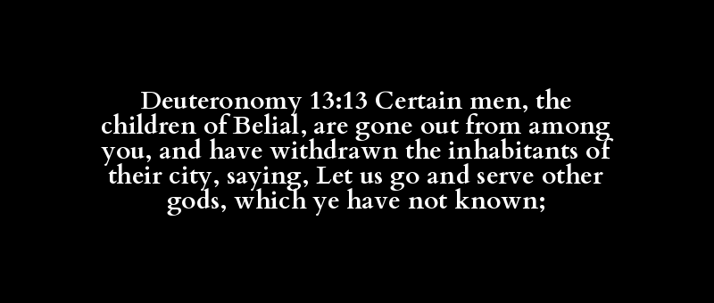 Deuteronomy 13:13 Certain men, the children of Belial, are gone out from among you, and have withdrawn the inhabitants of their city, saying, Let us go and serve other gods, which ye have not known;