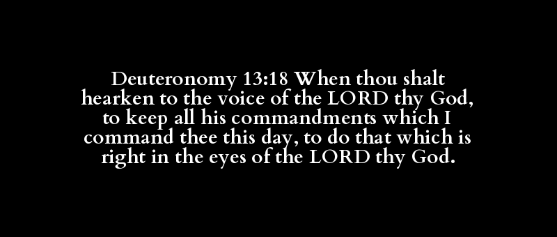 Deuteronomy 13:18 When thou shalt hearken to the voice of the LORD thy God, to keep all his commandments which I command thee this day, to do that which is right in the eyes of the LORD thy God.