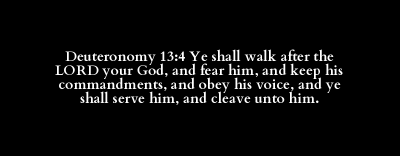 Deuteronomy 13:4 Ye shall walk after the LORD your God, and fear him, and keep his commandments, and obey his voice, and ye shall serve him, and cleave unto him.