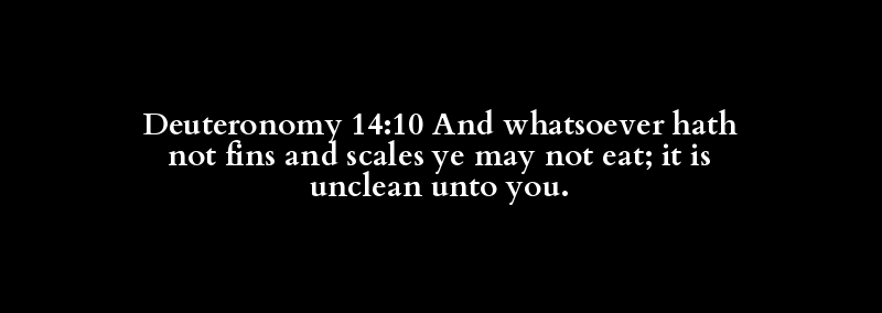 Deuteronomy 14:10 And whatsoever hath not fins and scales ye may not eat; it is unclean unto you.