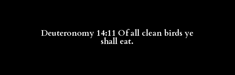 Deuteronomy 14:11 Of all clean birds ye shall eat.
