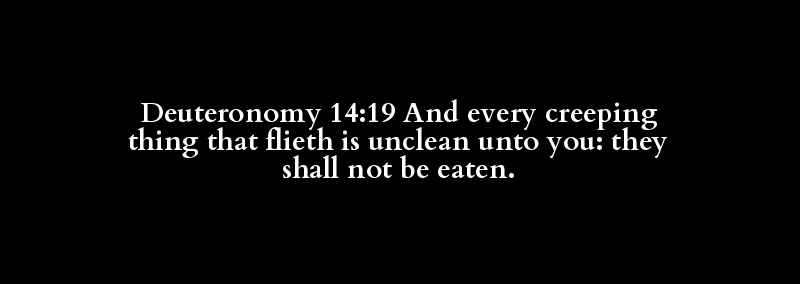 Deuteronomy 14:19 And every creeping thing that flieth is unclean unto you: they shall not be eaten.