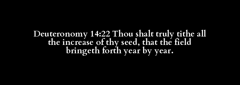 Deuteronomy 14:22 Thou shalt truly tithe all the increase of thy seed, that the field bringeth forth year by year.
