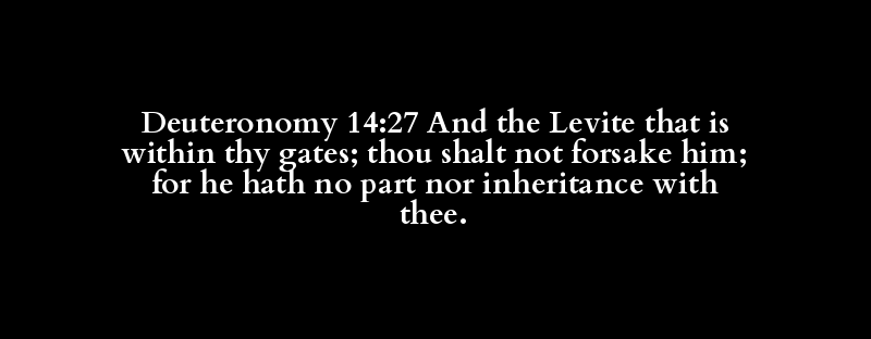 Deuteronomy 14:27 And the Levite that is within thy gates; thou shalt not forsake him; for he hath no part nor inheritance with thee.