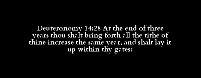 Deuteronomy 14:28 At the end of three years thou shalt bring forth all the tithe of thine increase the same year, and shalt lay it up within thy gates: